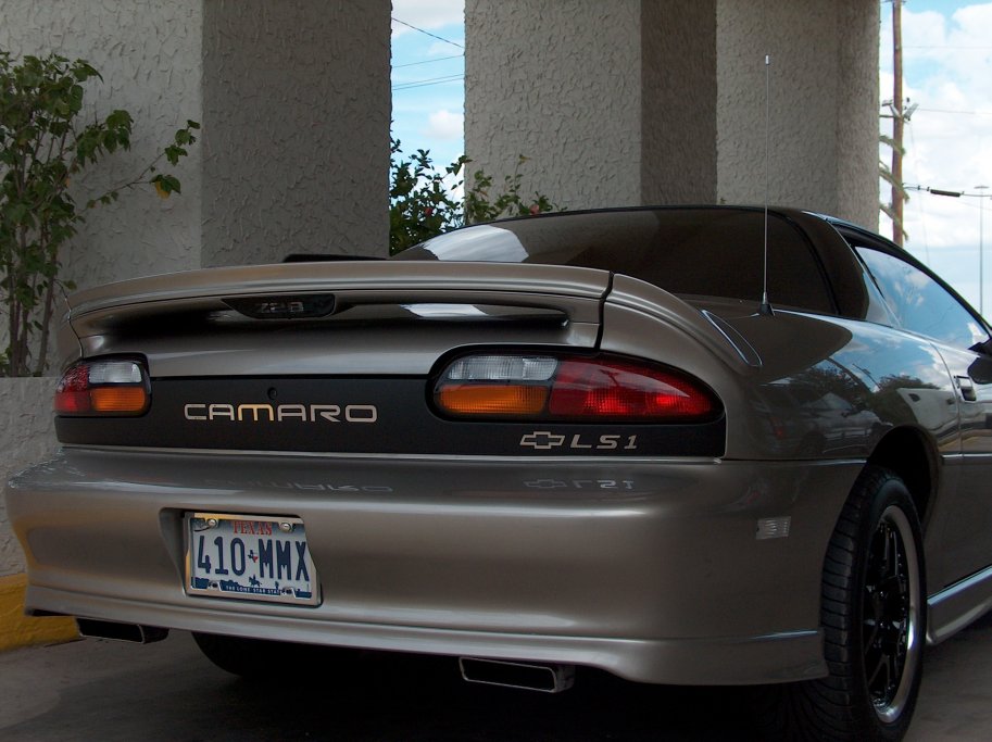 The letters in the rear as well as the bowtie and LS1 are all polished metal. You can also see my clear 3rd brake light mod which has red LED's in it.